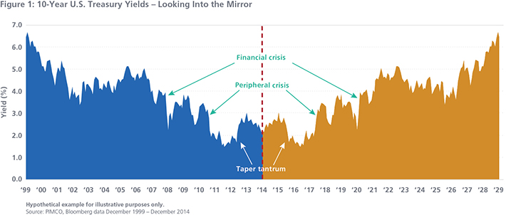 And for another great perspective, take a look at PIMCO’s work on what would happen to bonds if interest rates went back up at the same rate that they fell over the past 15 years. Yields would hypothetically look like this: