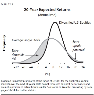 Known as one of the few “free lunches” of finance, diversification helps make sure that when one of your investment eggs crack, you still have many others that will survive. I like pictures, and our brains are hard wired to like them too, so here’s an illustration by Bernstein that shows how diversifying can help capture a higher average rate of return while reducing your downside risk: