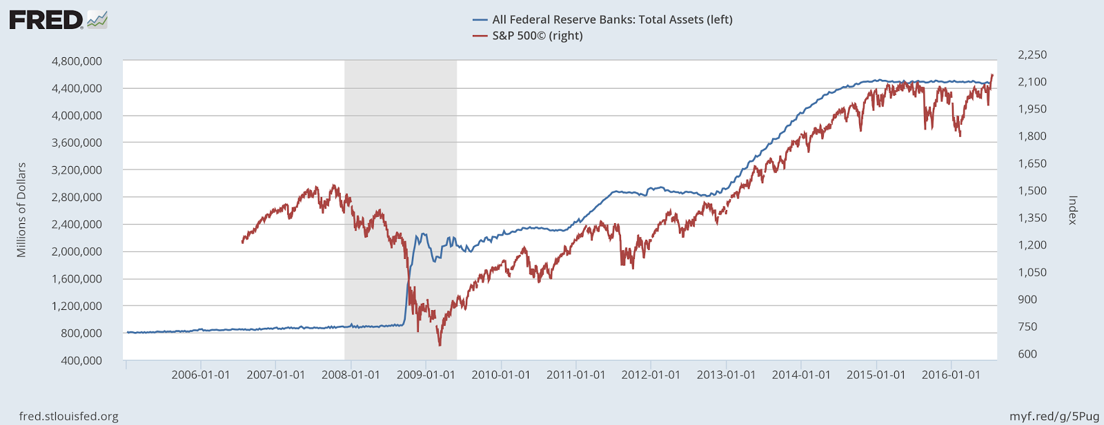 Federal Reserve Banks: Total Assets vs. S&P 500 Index