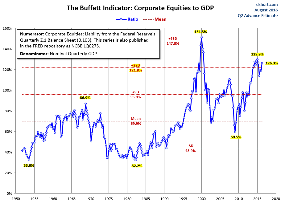Because of the lack of alternatives, it has also led to the increasingly dangerous belief that valuations do not matter very much, because everyone has to invest in the US market. The most important factor seems to be this: As long as the Federal Reserve is willing to keep interest rates near zero, the game can continue, since the savers have no alternative to go back to (and share buybacks can continue at cheap rates). And with the Brexit event passing, it gave market participants every reason to think that the timing of interest rate increases has been pushed back to as far as 2018, so the markets went straight up, despite the vote actually causing earnings projections to soften.